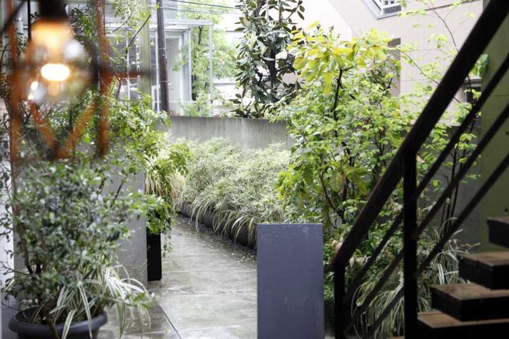 表参道ヒルズ裏、5分ほど歩いた閑静な街並みにひっそりとたたずむ「&t cafe(アンドティーカフェ)」。清潔感のある真っ白な壁とグリーンがあふれ、そこはまるで地中海リゾート。都会とは思えない温かみのある雰囲気が漂っています。