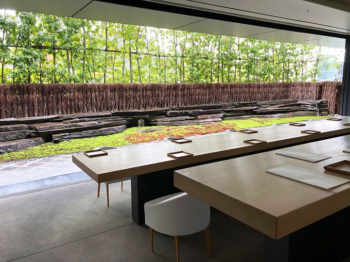 料亭はお酒と会席料理を楽しむ場所ですが、ここはお茶をしながらゆっくり過ごしてもらう場所。現代美術家の杉本博司氏が手がけた店内は、心が落ち着く凛とした空間で、都心であることを忘れてしまうような美しい苔庭を眺められます。