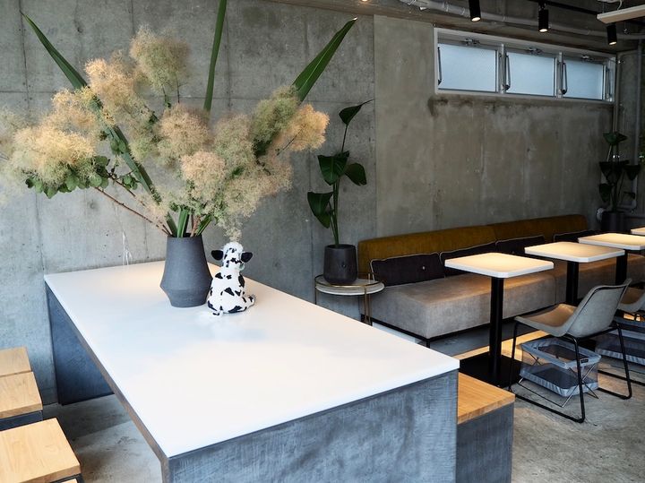 明治神宮前(原宿)駅から徒歩5分の場所にある、シメパフェ専門店「INITIAL omotesando(イニシャル 表参道)」。店内は無機質なインテリアでまとめられ、スタイリッシュな雰囲気。昼間は大きな窓から太陽の光が差し込み、開放的で居心地のいい空間が広がります。