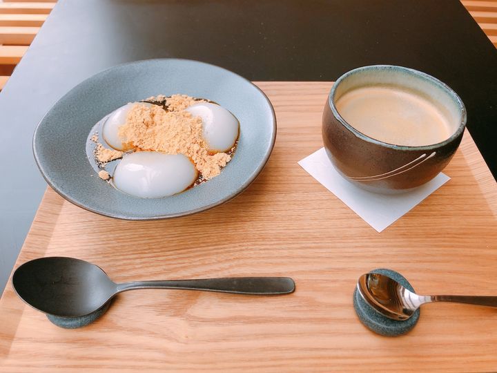そんな特別なくず餅の原料に熱を加えてつくられた「BE:SIDE」の看板商品が「みずくずもちセット」1250円。黒蜜黄な粉がかかったみずくずもちと飲み物がセットになっており、できたてのみずみずしい食感とやわらかさは別格! 20分以内に食べてほしいという、ここでしか味わえないスペシャルなメニューです。