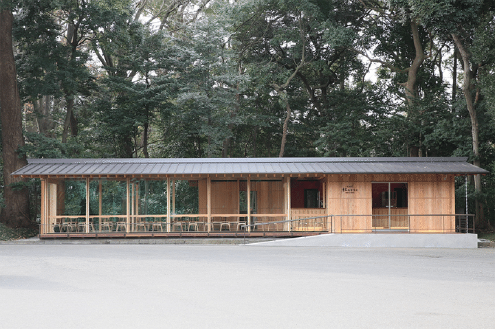JR原宿駅西口からすぐの「明治神宮」。緑いっぱいの「明治神宮」敷地内、南参道の鳥居前にあるのが「CAFÉ杜のテラス」です。木材のぬくもりが外観からも伝わってきて、すでに素敵な雰囲気を醸し出していますね。