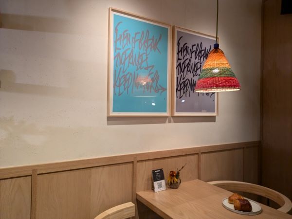 絵画も飾られていて、ゆったりとコーヒーやパンを楽しむことができますね。