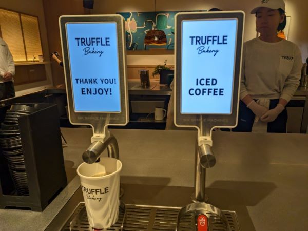 こちらでパンを選んだら、奥へ進み、ドリンクのオーダーをします。