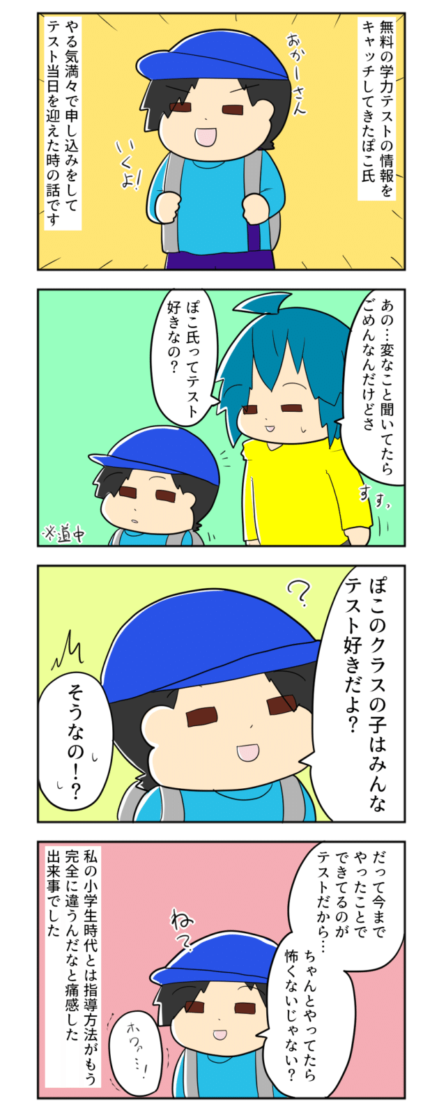テスト当日はワクワク。ちゃんとやってたら怖くないと言う息子にすごいとしか言えない母|mochikoの育児マンガ