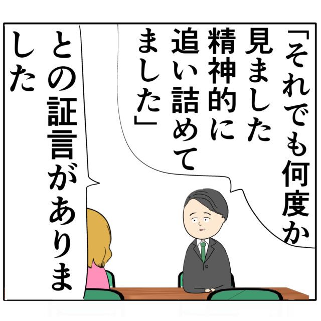 「それでも何度か見ました。精神的に追い詰めてました」としんり学さんが証言したとふり子さんに伝える課長。
