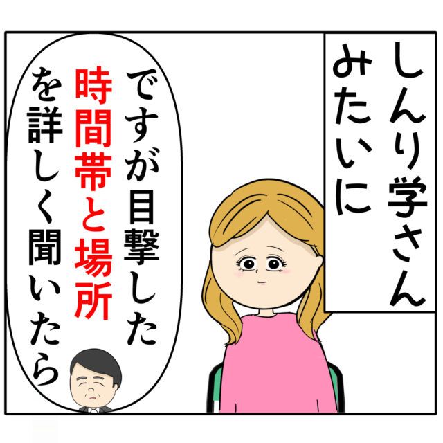 「しんり学さんみたいに」と、しんり学さんのライバル心を上手く利用できたと思っていたふり子さん。しかし、ここで部長が予想外の言葉を口にします。「ですが、目撃した時間帯と場所を詳しく聞いたら」