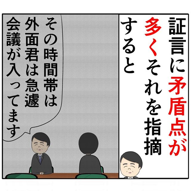 後輩女性ふり子さんが逆恨みする良し男さんを陥れようとでっちあげたセクハラとパワハラ疑惑。ふり子さんに有利な証言をしていた社員が何人かいたものの、部長と課長が聞き取り調査をすると、ぴあ須さんはふり子さんに頼まれて嘘の証言をしたと白状。それについて説明を求められたふり子さんは「証拠がないと信じてもらえないと焦り嘘をついた」とまたしても嘘を上塗り。そしてもう一つのパワハラ証言をアピールします。
