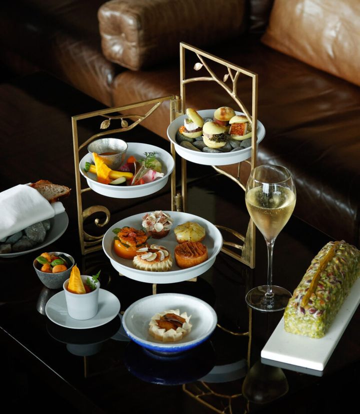 その名が示すように、フランス料理「エステール」のシェフである小島 景氏が腕によりをかけたメニューをメインに構成されるアフタヌーンティー “テール エ メール”は、繊細なフレンチダイニングを凝縮したよう。特別に作られたスタンドは、目の前に広がる皇居外苑の豊かな自然をイメージし、エステールのコンセプトである大地と海をモチーフにしているのだとか。