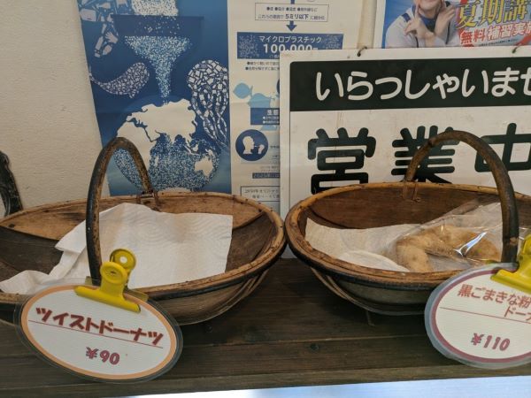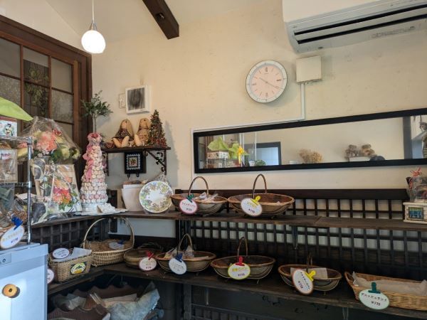 可愛らしい店名は、オーナーさんの出身地、沖縄県宮古島の言葉で、「ふぁい」は「食べて」、「みーる」は「みて」という意味だそうです。ご主人の出身地であるこちらで、義父が経営していた釣り具屋さんの6畳ほどのスペースを、オーナーさんが改装してお店を始めました。店内に入ると、外観から想像していた通りのメルヘンチックな空間です。かごが沢山並んでいて、森にピクニックに来たかのようです。かご一杯にパンを入れているお客さんの表情も楽しそう♪