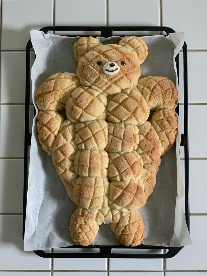 メロンパンボディのマッチョくまに19万いいね「食べ応えありそう」「つよカワイイ!」