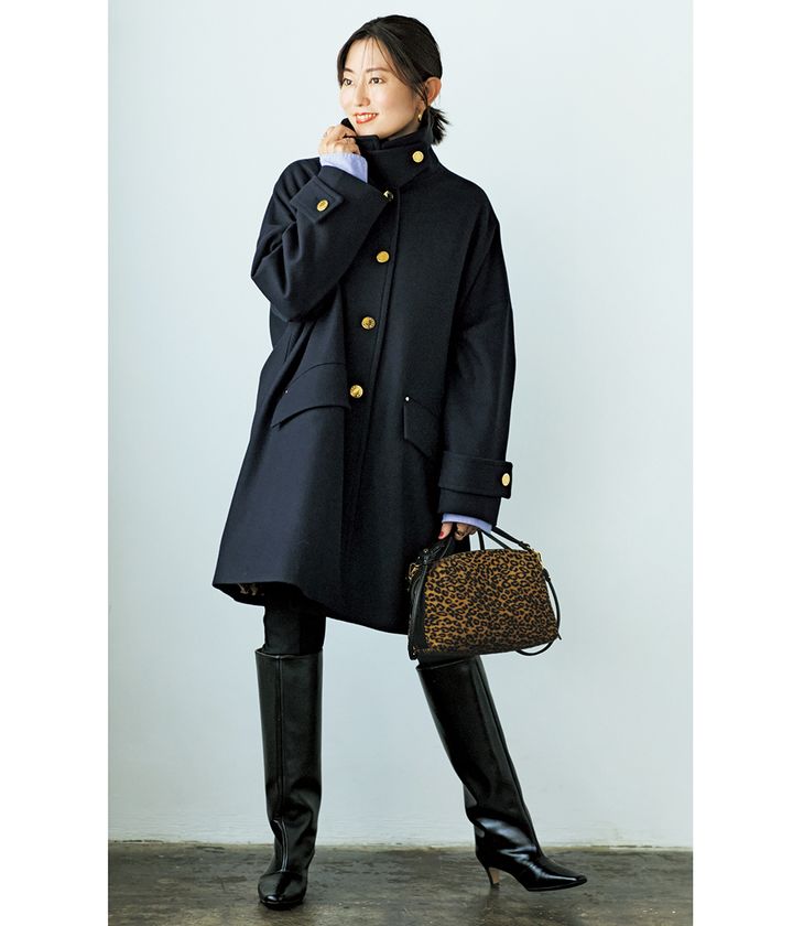 シンプルながら金ボタンとアニマル柄裏地に惹かれました。上質な素材と万能な丈感で、デイリー使いしたい。ブーツインでトラッドな着こなしが今の気分です。