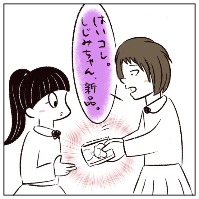 さなかちゃんは「はいコレ。しじみちゃん、新品」と言って約束通り新品のマンガを持ってきました。