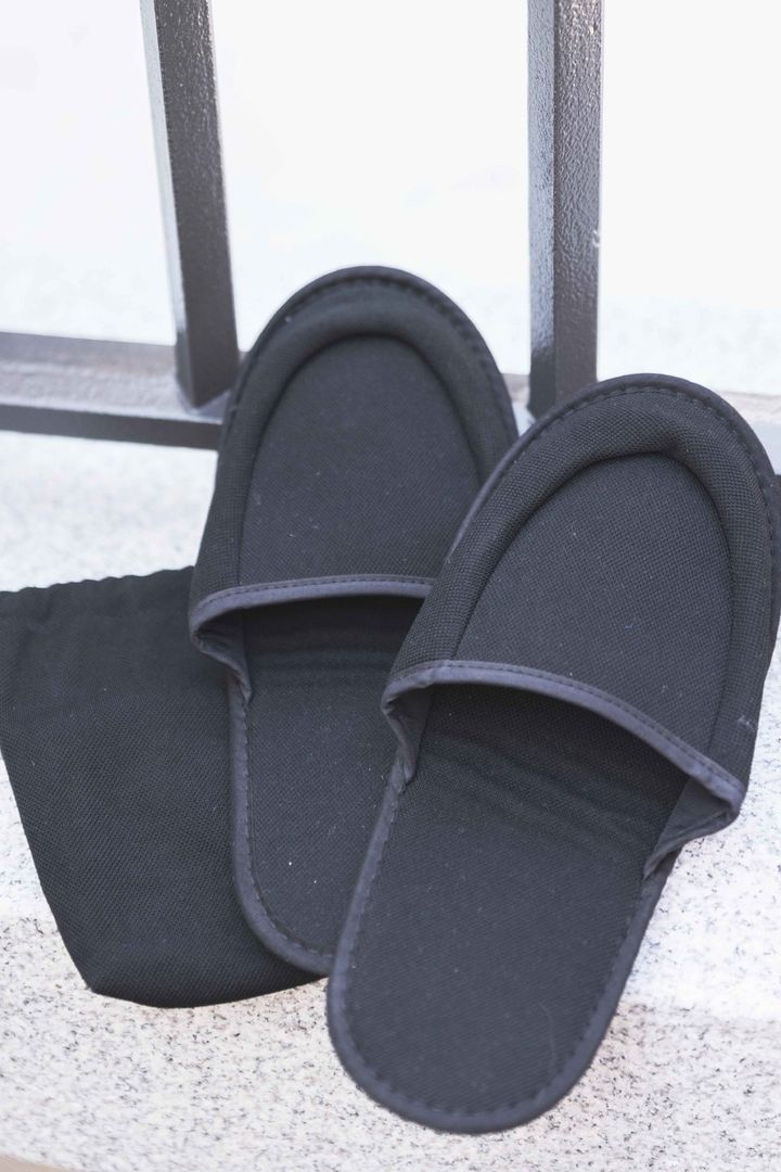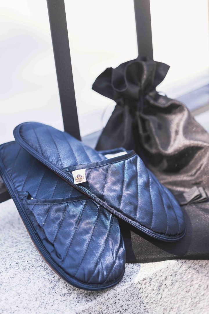 「サテン生地で軽く、持ち運びに便利なナラヤの室内履きは、数年前にタイへ旅行した際に購入しました。シンプルなデザインで高級感もありお気に入りです」大塚麻依子さん・35歳(インター9歳男の子と私立幼稚園4歳男の子と2歳女の子のママ)