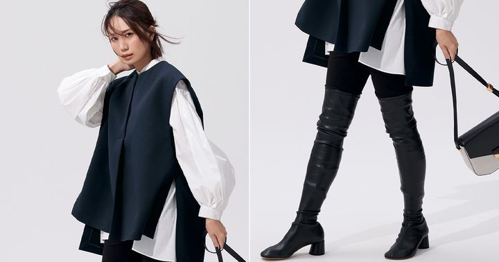 マトラッセトリプルクロスジレ¥29,700 ブラウス¥24,200 レギンスパンツ¥24,200〈すべてル フィル〉バッグ¥68,200〈デメリエー〉ブーツ¥138,600〈プロエンザ スクーラー〉(すべてル フィルニュウマン 新宿店)