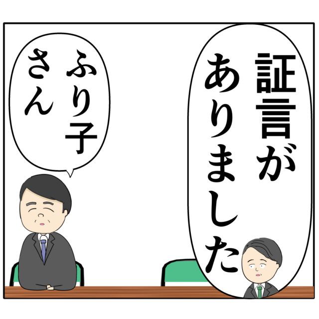 良し男さんを陥れようとセクハラとパワハラ疑惑をでっちあげた後輩女性ふり子さん、ふり子さんに有利な証言が複数出ていたものの、あらためて聞き取り調査をしたところ、嘘の証言をした、とあっさり白状するぴあ須さんや、パワハラの目撃証言をしていたしんり学さんもあっけなく嘘を認めたと聞き、「外面さんに口止めされた」と証言しましたが、「ふり子さんが信憑性のない噂を広めている」との証言があると課長に言われ、さすがに追い込まれてしまいました。