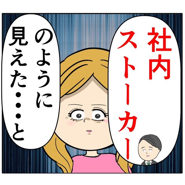 「『ふり子さんが社内ストーカーのように見えた』・・と」と課長がマキさんの証言をふり子さんに伝えました。それを聞いて顔面蒼白のふり子さん。