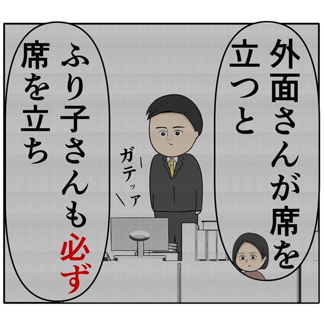 「外面さんが席を立つと、ふり子さんも必ず席を立ち」と話を続けます。