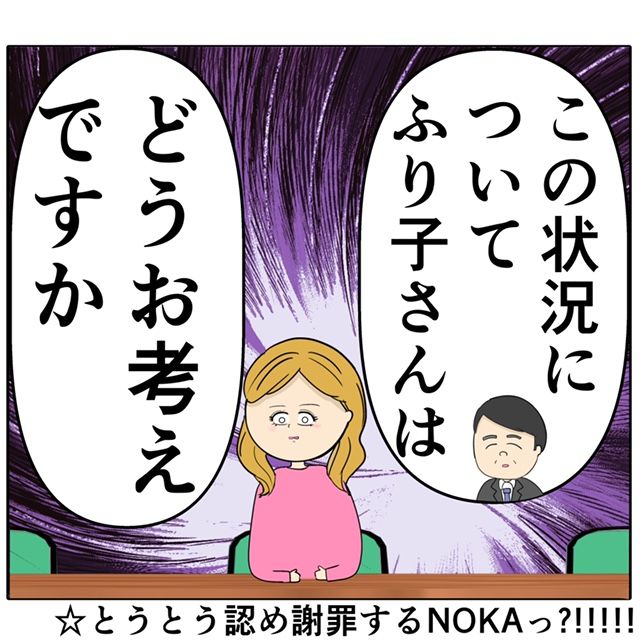 「この状況について、ふり子さんはどうお考えですか?」部長の質問に、完全に追い詰められたふり子さんでした。