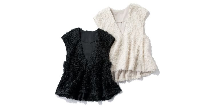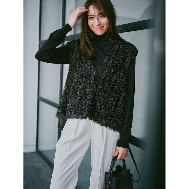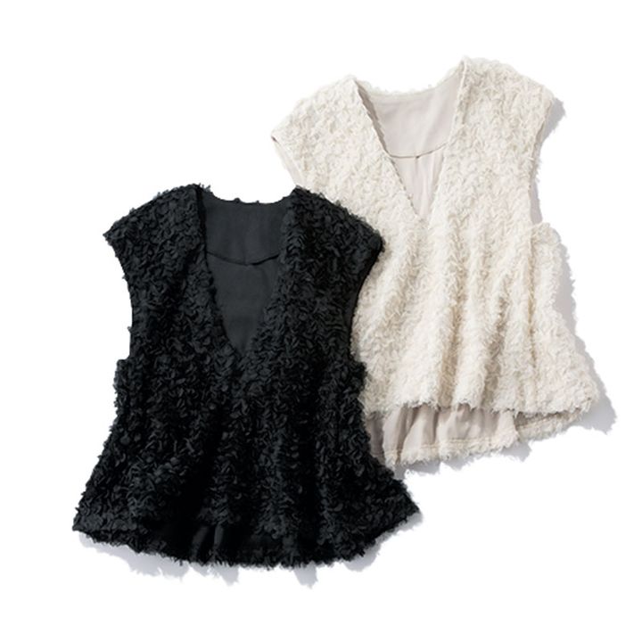 THREE SQUARE シャギーペタルジレ ホワイト、ブラック Price_¥17,600