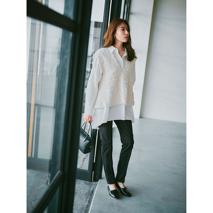 おなじみの白シャツに重ねて ワンランク上の冬の白コーデに