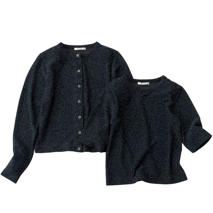 トレンドのラメニットで コンサバアイテムの定番 アンサンブルも今年らしく更新