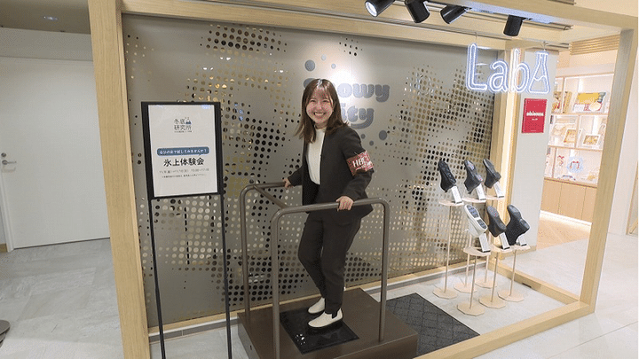 さらに店内には、実際に氷の上で歩いて滑りにくさを体験できるコーナーもあります。