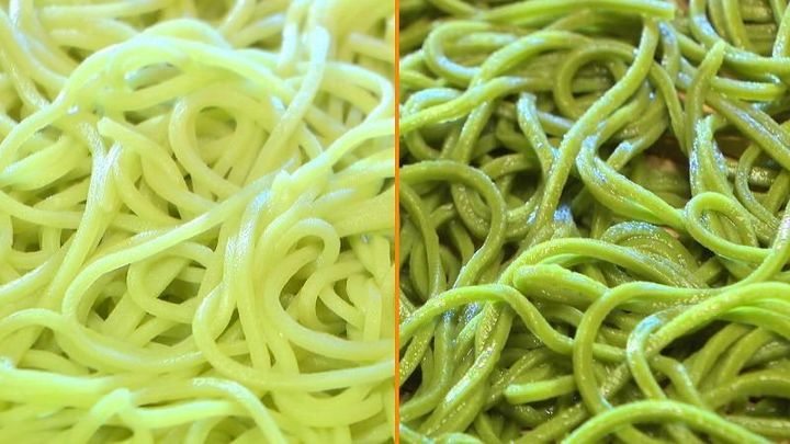 右が茶そば 明らかに色が違う!