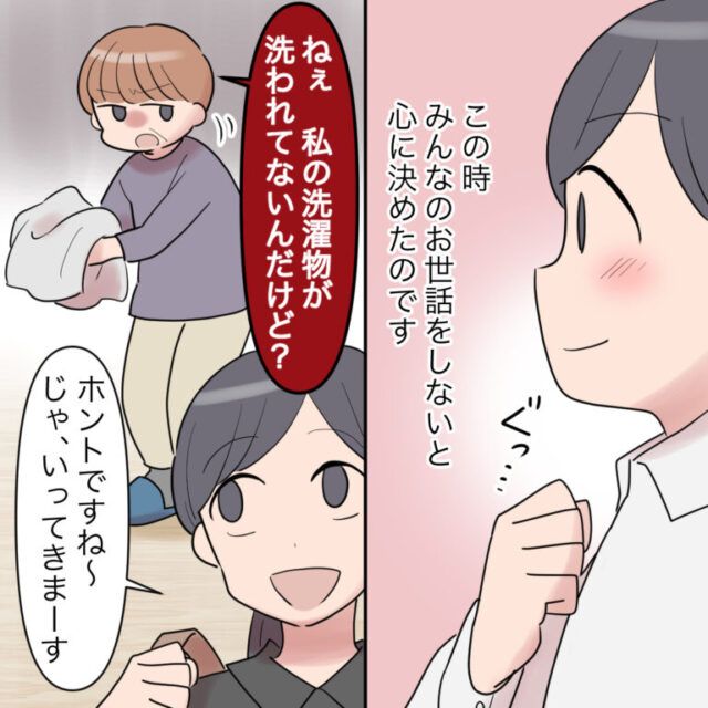 義母に「私の洗濯物が洗われてないんだけど?」と責められても「ホントですね~じゃ、行ってきます」と仕事に出かけるようになりました。