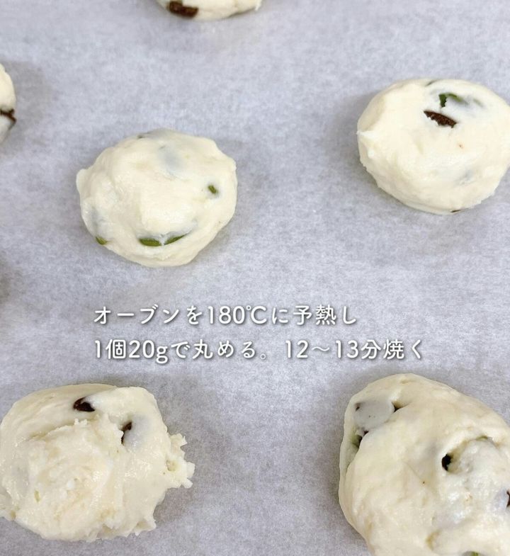 3.オーブンを180℃に予熱し、1個あたり20gで丸め、12〜13分焼きます。