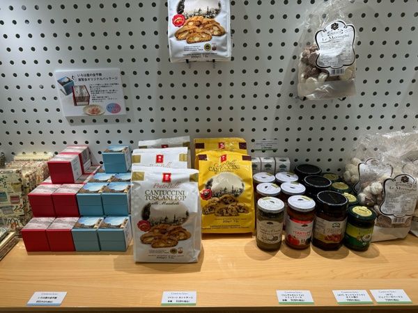 イタリアのスイーツ、パスタソースも販売されています。イタリアのエッセンスが感じられ、魅力的な品ぞろえです。
