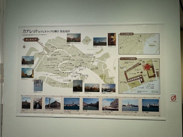 会場内にはカナレットが描いた作品の関連地図も展示されています。ヴェネツィアの様子がより詳細に説明されています。