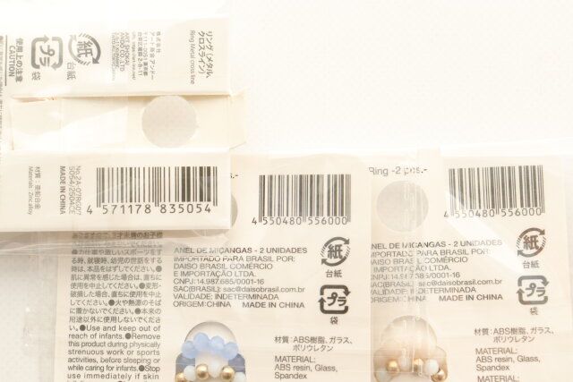 こちらの『ビーズリング(2本)』は、アイボリー系とゴールド×ホワイトのリングがセット。同じく110円(税込)です。