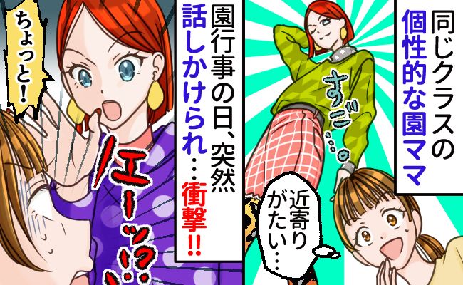 その個性的なママは3人のきょうだいを子育て中で、幼稚園の事情に詳しい様子。他のママたちに比べて声が大きく、気が強そうに見えて怖い印象でした。人見知りで地味な私は、個性的なママと仲良くできる自信がなく……。