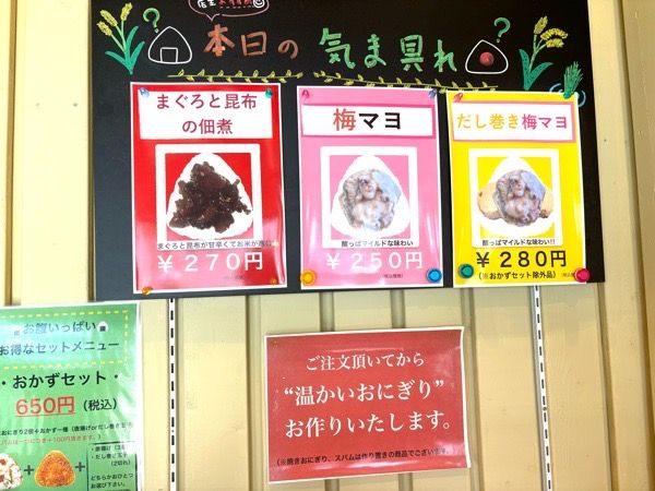 定番商品18種に加えて店主おすすめの日替わりメニュー「気ま具れ」は平日1種類、週末は3種類用意しています。オープンしてから今までに100種類のおにぎりが誕生しているそうです!