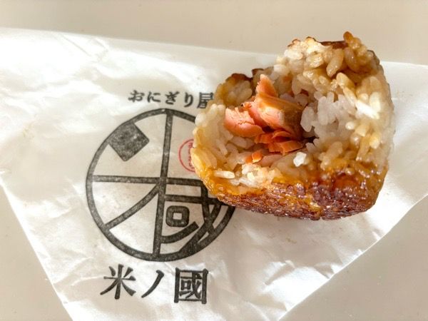 人気の焼きおにぎり鮭(260円)は、だし醤油の香ばしさと中の鮭が絶妙な味加減です。