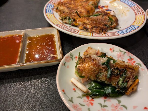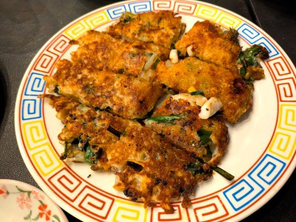 ニラもイカもたっぷり入ったフワフワのチヂミです。これは、いくらでも食べられる!