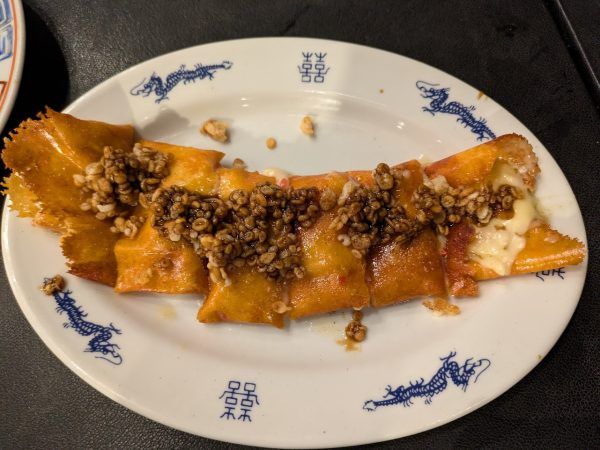 揚げ春巻きのパリパリの生地にとろ~りチーズのおやつのような料理でした。いいですね~。