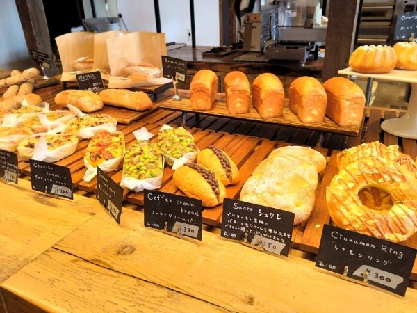 店内には、おいしそうなパンがずらりと並んでいます。