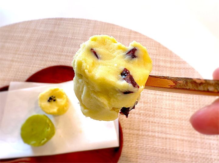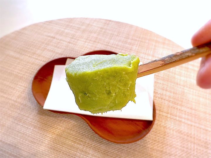 粉末緑茶のほろ苦さが、さつまいもの甘さと絶妙に調和しています。