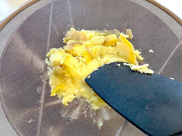 2. 1のさつまいもを熱いうちに裏ごしする。