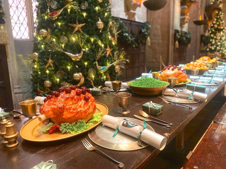 七面鳥や果物、ケーキやクリスマスプディングなどイギリスの伝統的な食事が並んでいて、思わずお腹が減ってきてしまいそう!