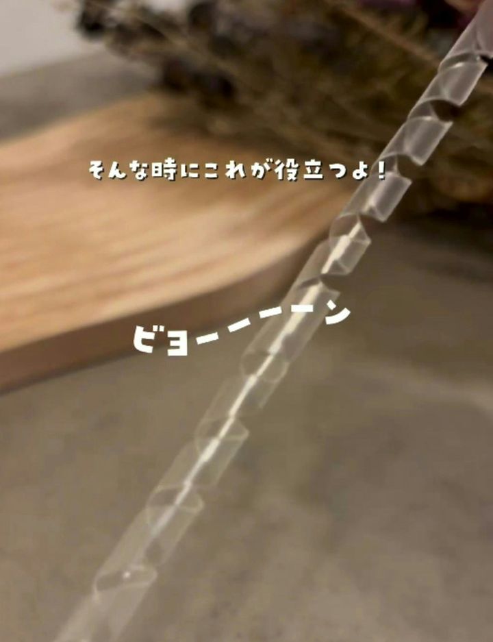 ストローでケーブルの保護ができるとは、驚きのアイデアでしたね。家にあるもので簡単にできるので、数の多いコードやケーブルが一度にケアできてとっても便利です。