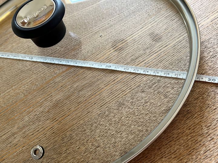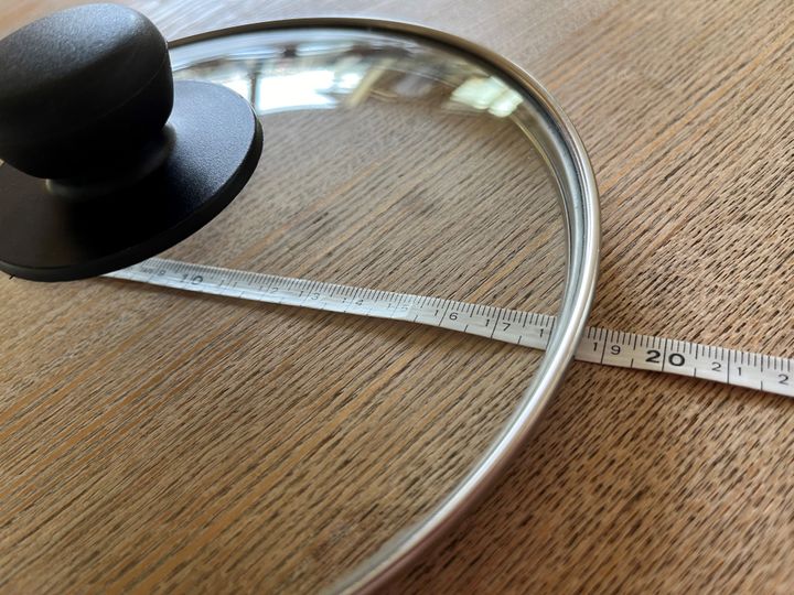 まずは、口径18㎝の鍋ふたで試してみます。わが家ではみそ汁などを作るときに使っている、使用頻度が高めの小鍋のふた。