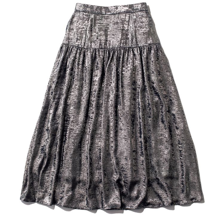 煌めくシルバーがインパクト大でコーデに特別感を。 シルバーシャイニースカート¥7,920(ビーミング by ビームス/ビーミング ライフストアby ビームス ららぽーとTOKYO-BAY店)