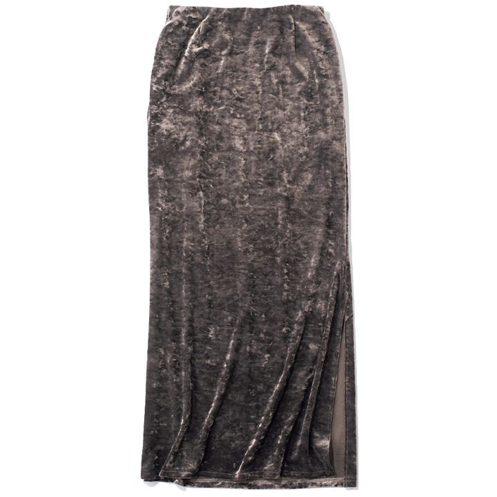 こなれたニュアンスカラーの奥行き感ある質感で感度高めな着こなしに。 ベロアナロースカート¥19,800(アルページュストーリー プレスルーム)