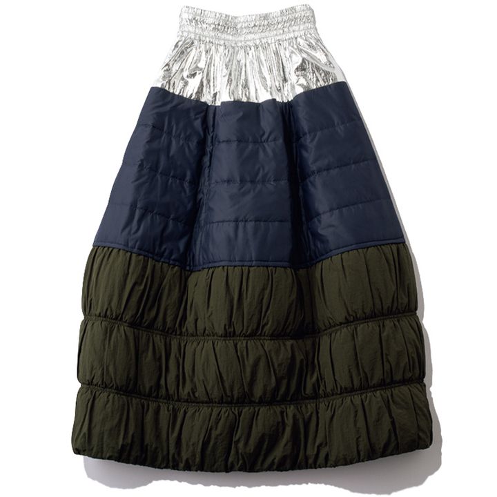 着映えるスカートナンバーワン!なボリューム感と配色が斬新。 パディングトリコロールカラースカート¥39,600(OMMO)