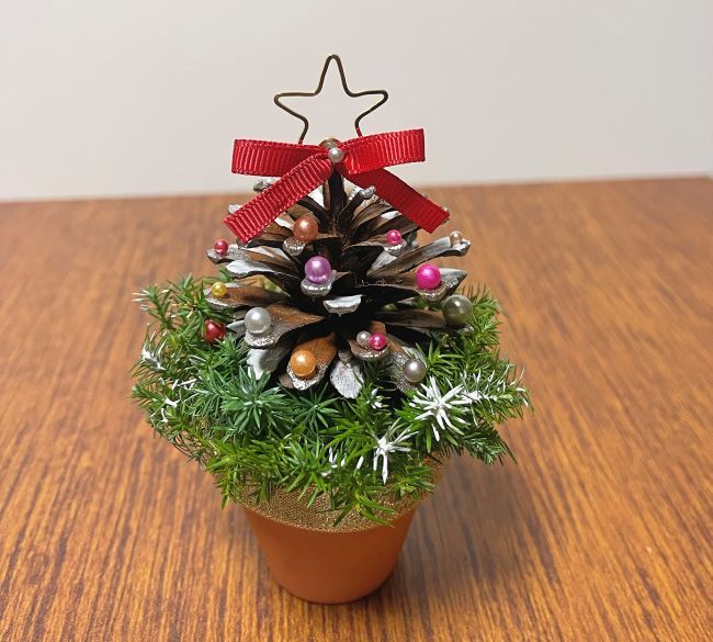 松ぼっくりにペイントやデコレーションをしてオリジナルツリーを作ります。