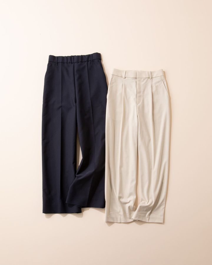 ネイビーパンツ¥29,700(yori)エクリュパンツ¥3,990(ユニクロ)