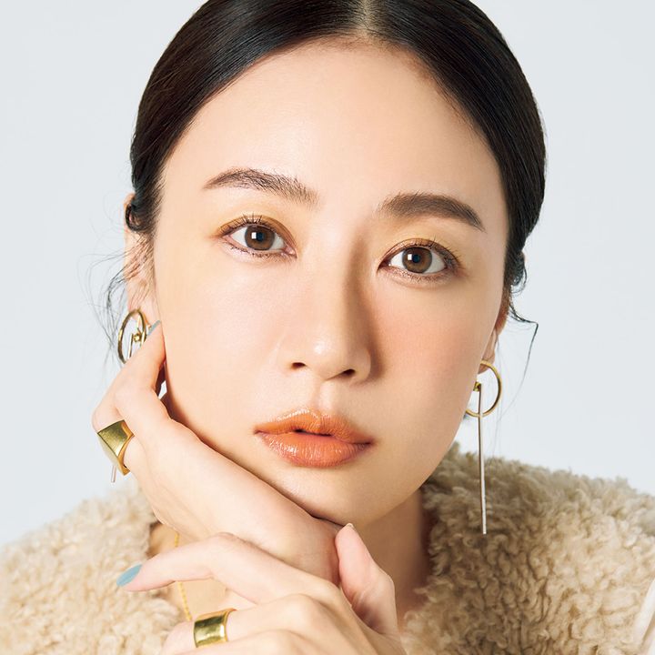 《衣装クレジット》ファーベスト¥26,400(カレンソロジー/カレンソロジー 二子玉川) ブラウス¥22,000(ジャスグリッティー プレスルーム) リング[右手]¥21,780〈ソコ〉リング[左手]¥13,640〈フル・オブ・グレイス〉(ともにZUTTOHOLIC) ピアス¥19,800(セソワ)