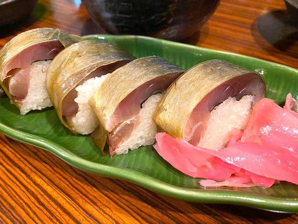 お待たせしました。1番のオススメメニュー さばずし(600円)。本来は3貫です。4人で行きましたので4つにしてくれました。なので4つで800円でした。この気遣いが嬉しいです。 でも1人1皿でも良かったかなと思うほどのおいしさでした。